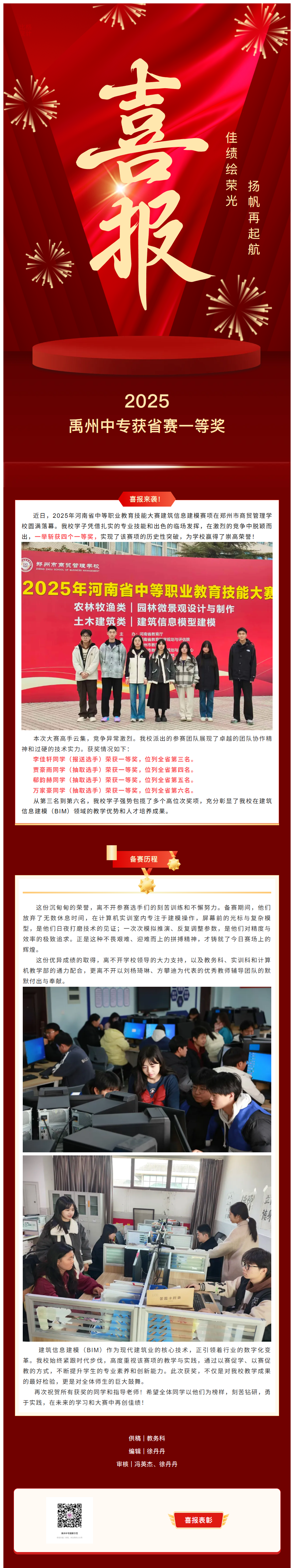 凯旋归来|禹州中专建筑专业斩获四个省赛一等奖!